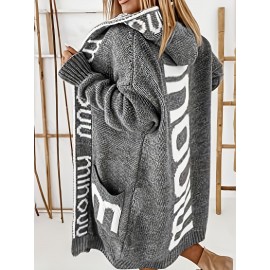 Jesus Print Open Front Cardigan, Casual Long Sleeve Cardigan For Spring & Fall, Women's Clothing