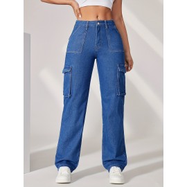 Green Loose Fit Cargo Pants, Flap Pockets Non-Stretch Baggy Denim Pants, Y2K Kpop Vintage Style, Women's Denim Jeans & Clothing