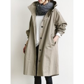 Fuzzy Hooded Jacket, Casual Zip Up Drawstring Long Sleeve Solid Outerwear, Women's Clothing